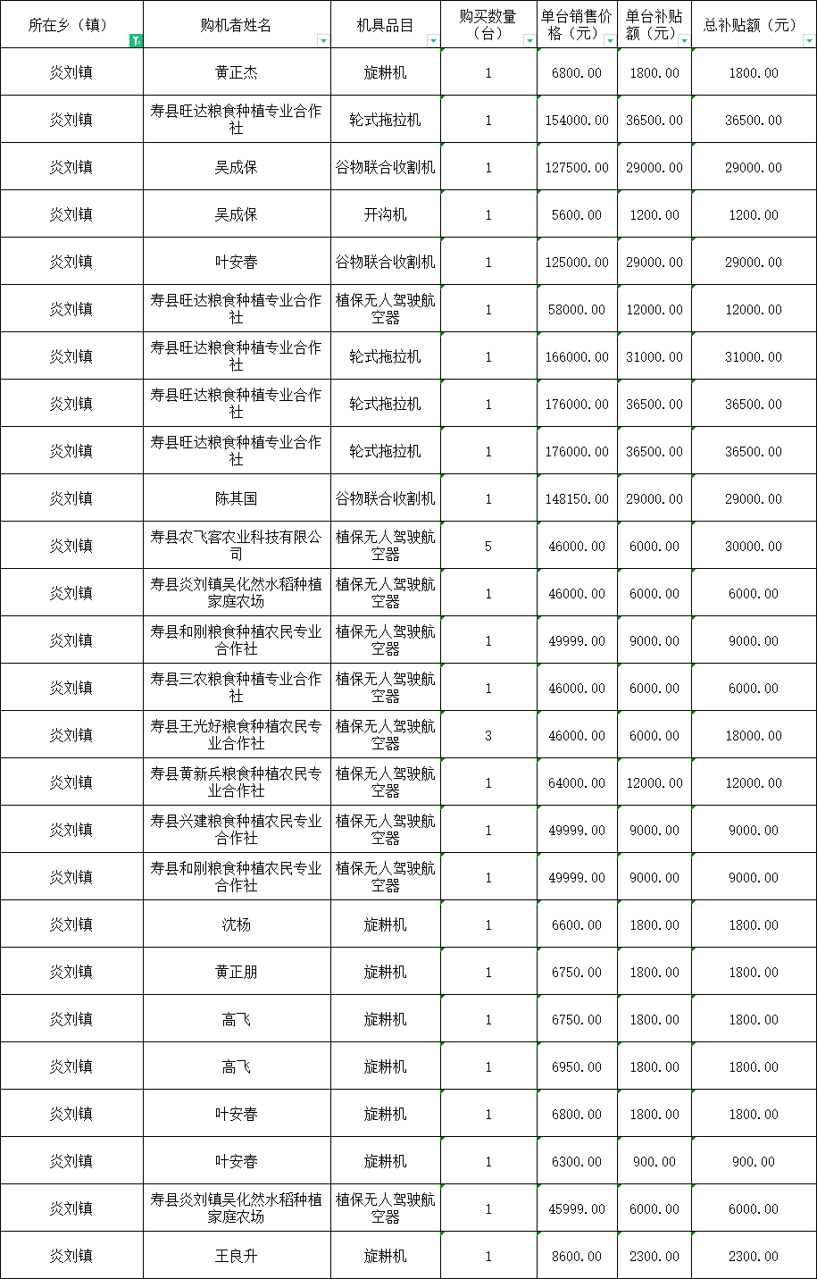 2023年炎刘镇县享受农机购置补贴的购机者信息表(第一批)