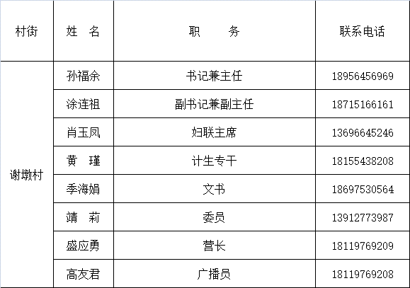 办公地址: 谢墩村村部 联系方式:0554-4990025