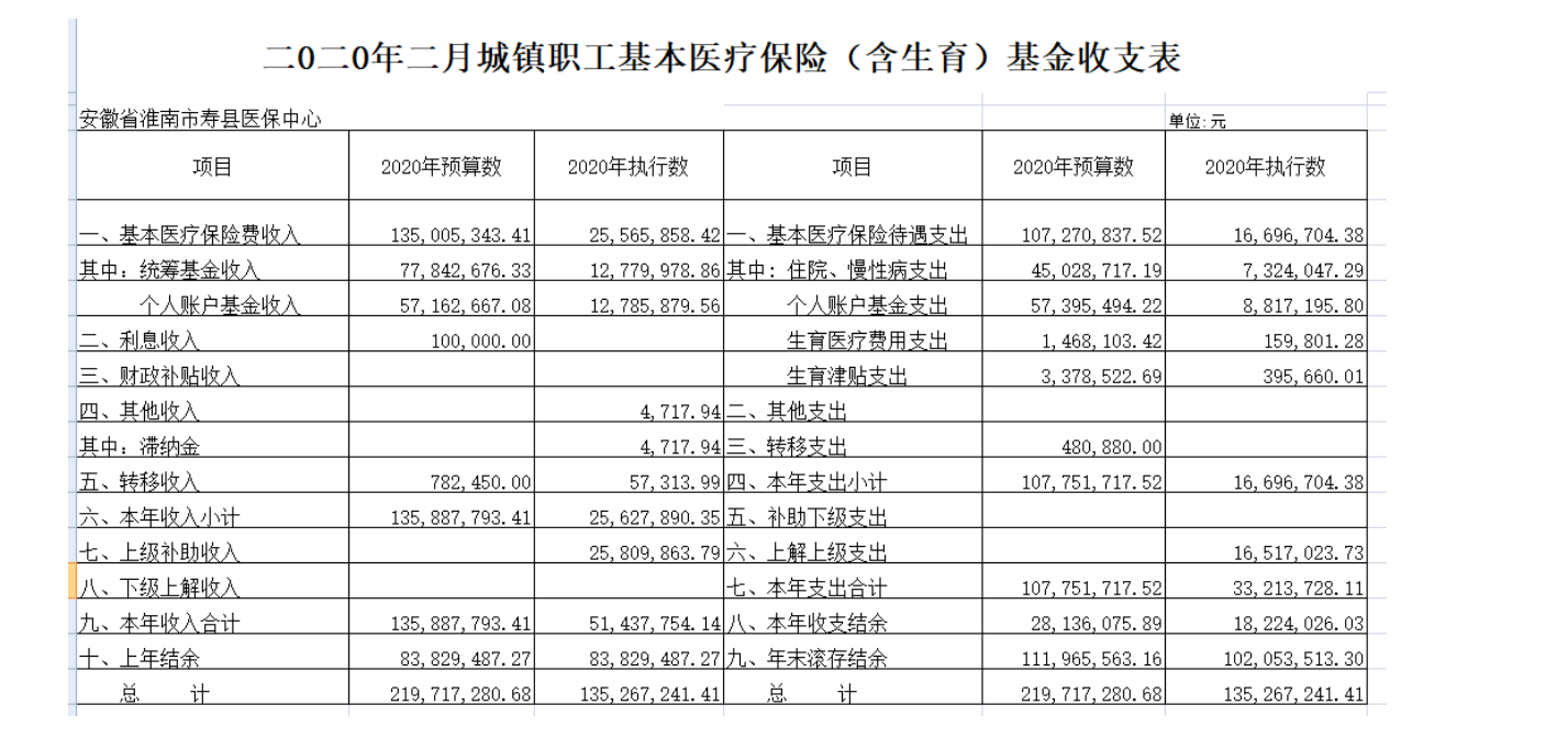 2020年2月城镇职工基本医疗保险(含生育)基金收支表