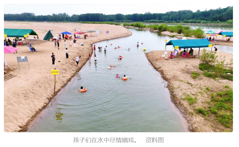 烈日炎炎,玩水,无疑是最清凉、畅快的解暑方式。张李乡通过科学规划、人性设计,精心划分出浅水区与亲子活动区,将淠河湾精心打造成了一片免费开放、安全有趣的亲水乐园。来自颍上县的四岁小朋友高奕宸,从沙滩上一路蹦蹦跳跳,冲向浴场,在大自然里尽情嬉戏,感受河水清凉与温柔。孩子母亲告诉记者:“孩子从小就喜欢玩水,这里的活水干净清澈,安全也有保障。”