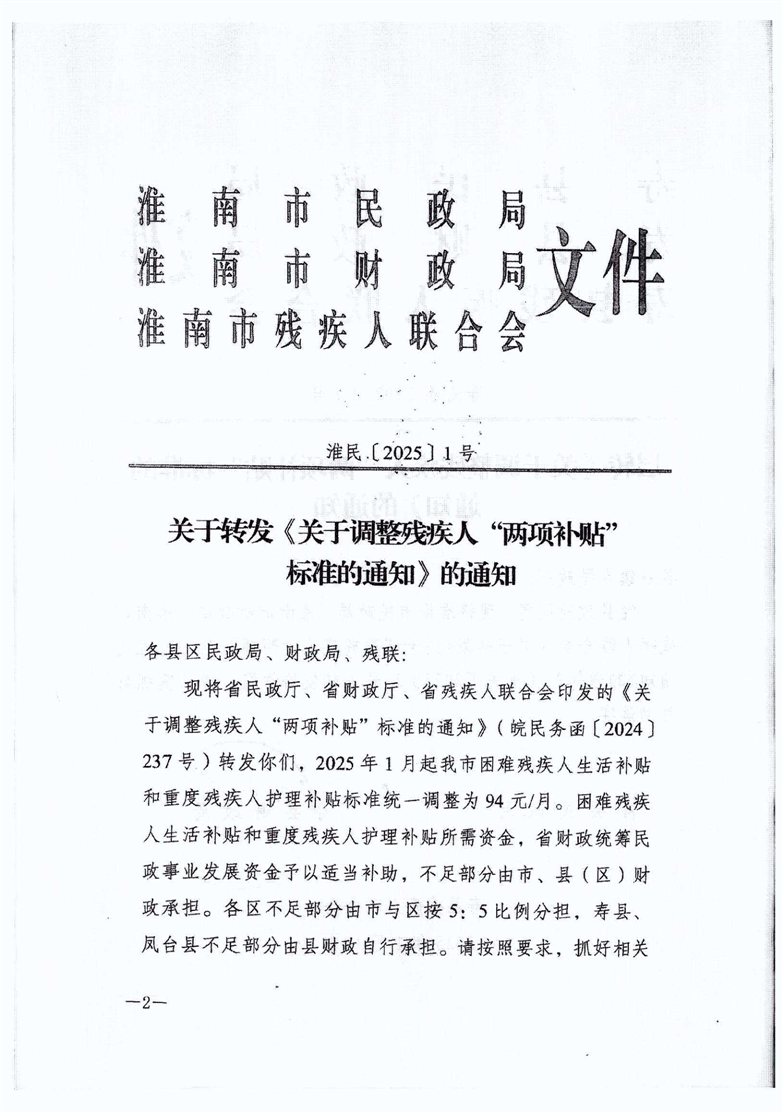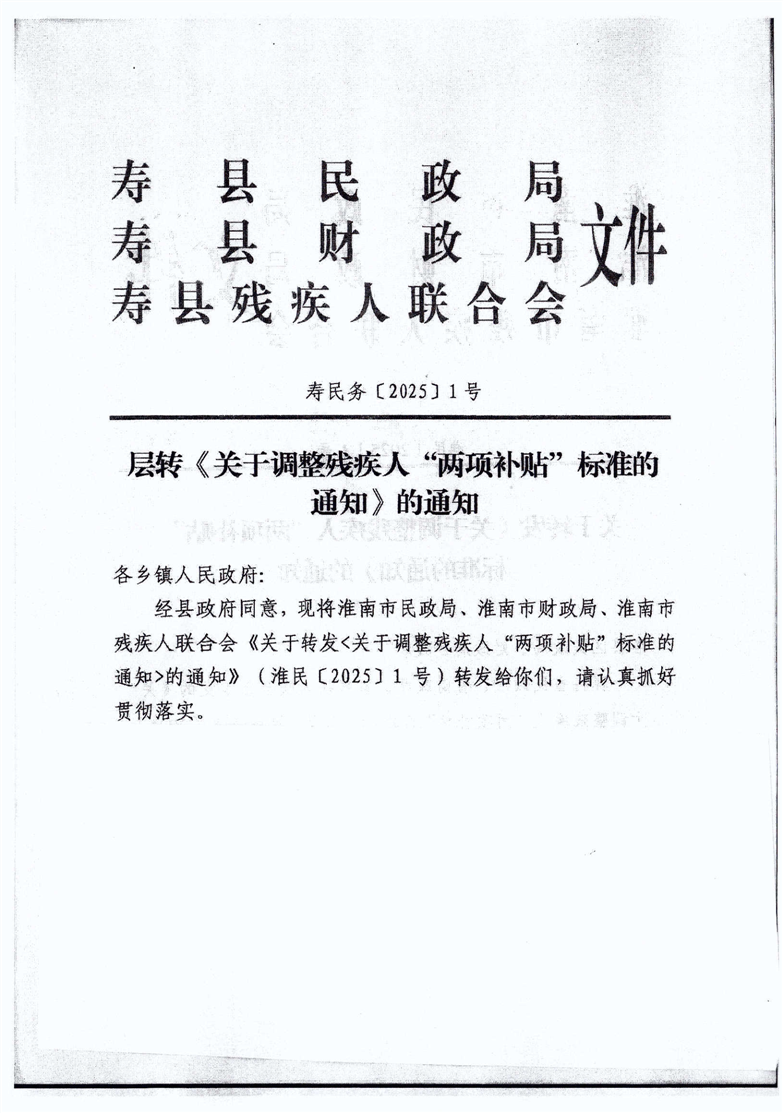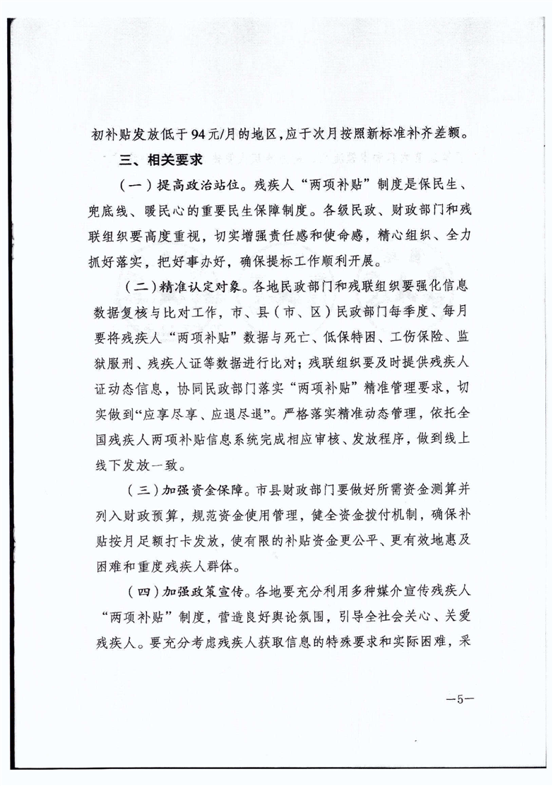 层转《关于调整残疾人“两项补贴”标准的通知》的通知