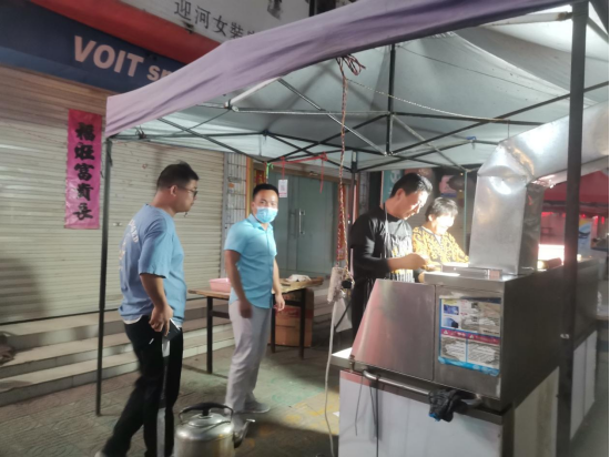 9月13日晚,镇环保站工作人员联合市监所督查镇辖区内所有烧烤店油烟净化器使用情况,督查过程中,环保站人员再次强调经营过程中油烟净化器必须使用、定期清洗。