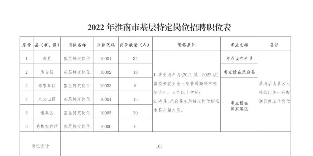 2022年淮南市高校毕业生基层特定岗位人员招聘公告