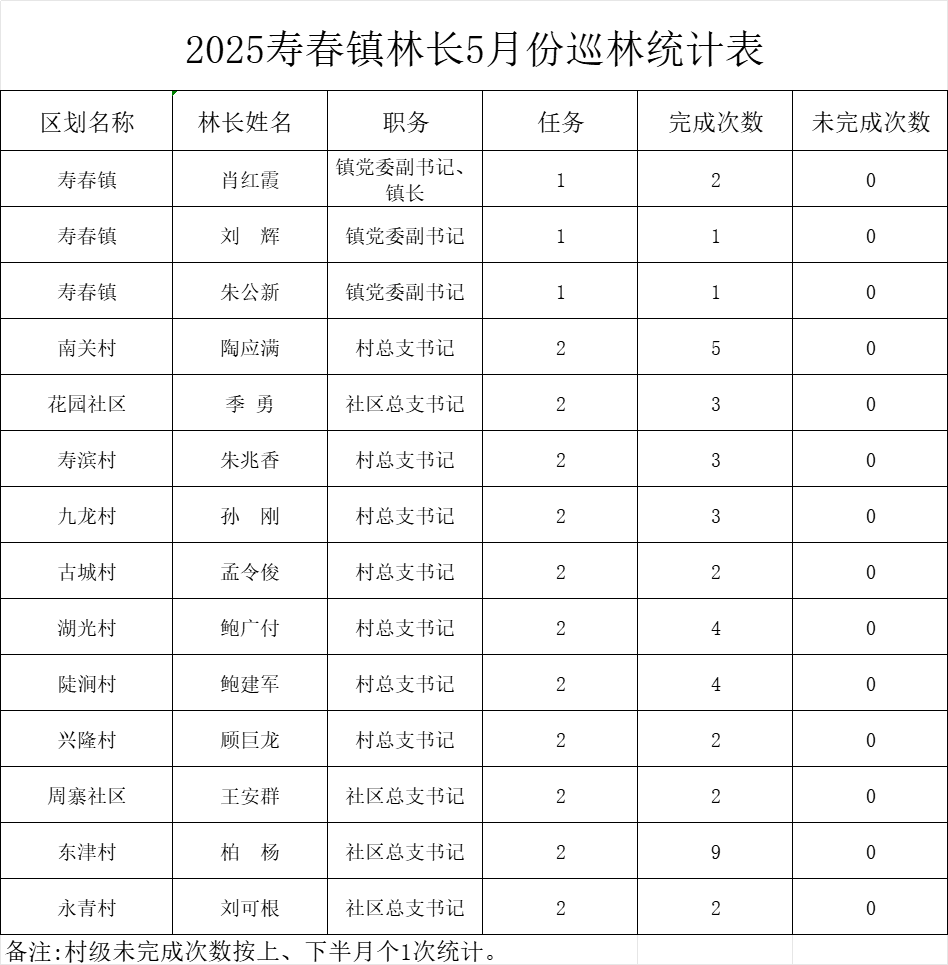 寿春镇2025年5月份林长巡林统计表