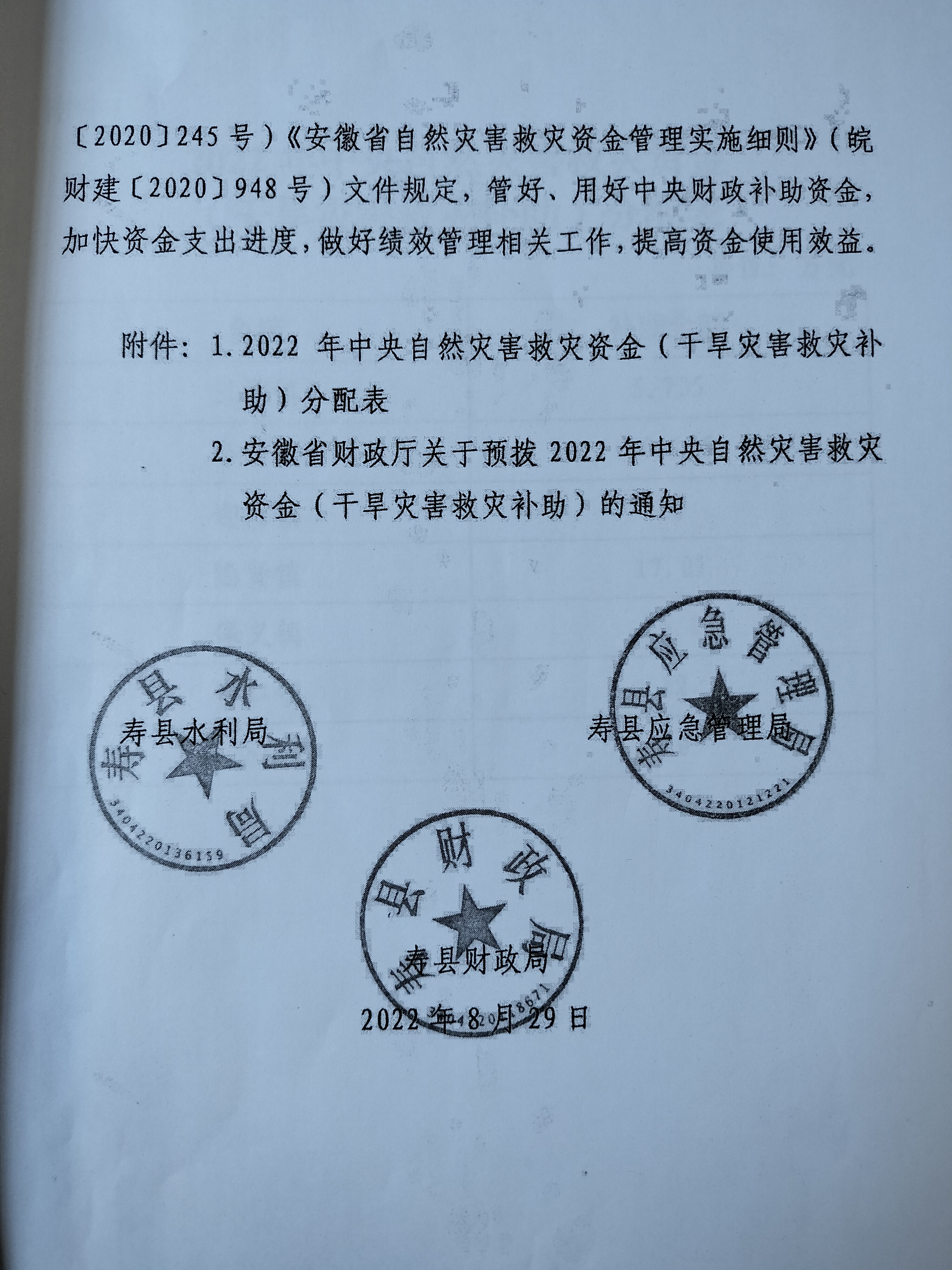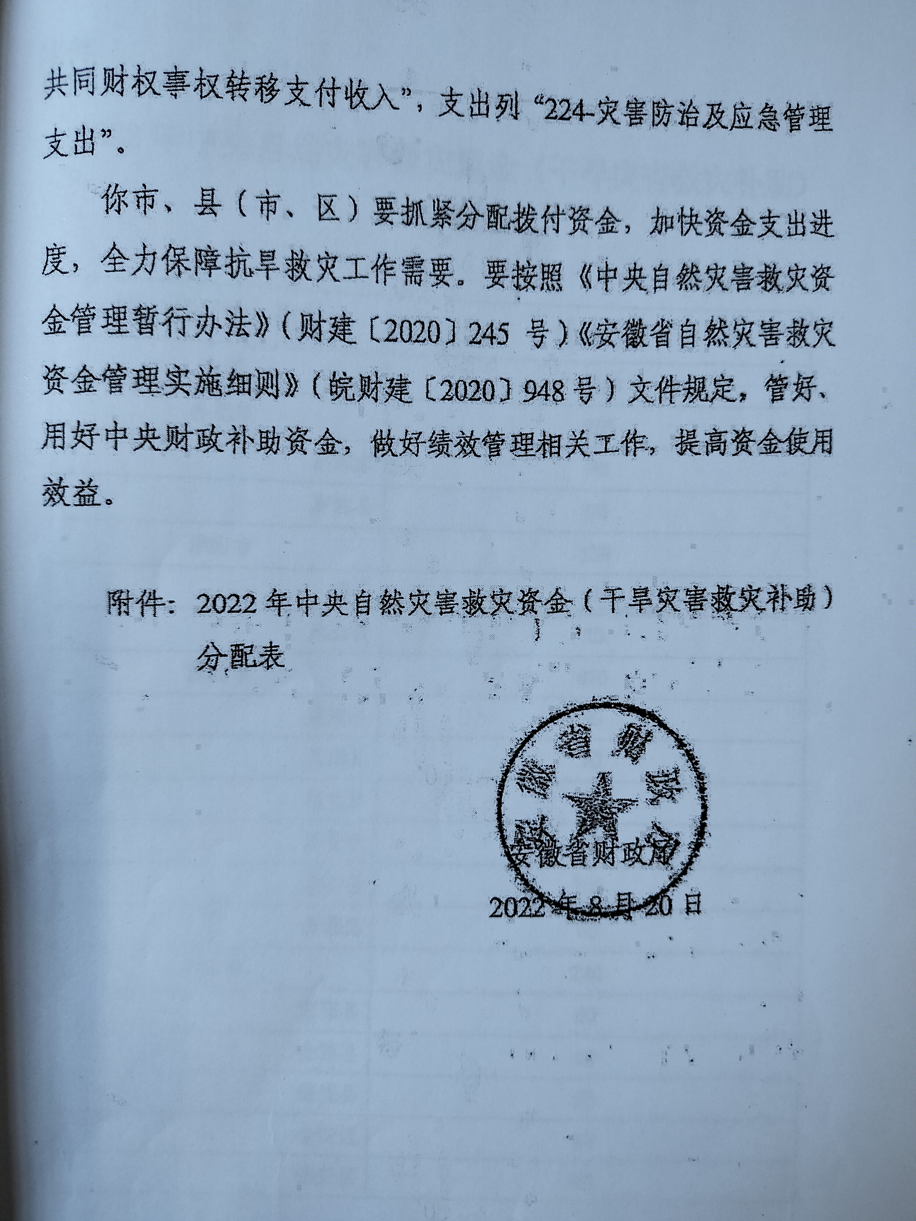 2022年中央自然灾害生活补助资金政策与标准