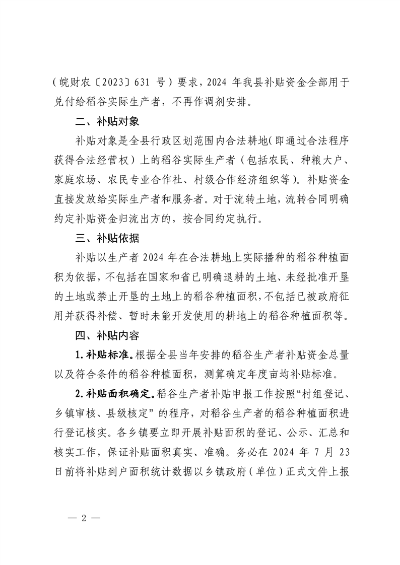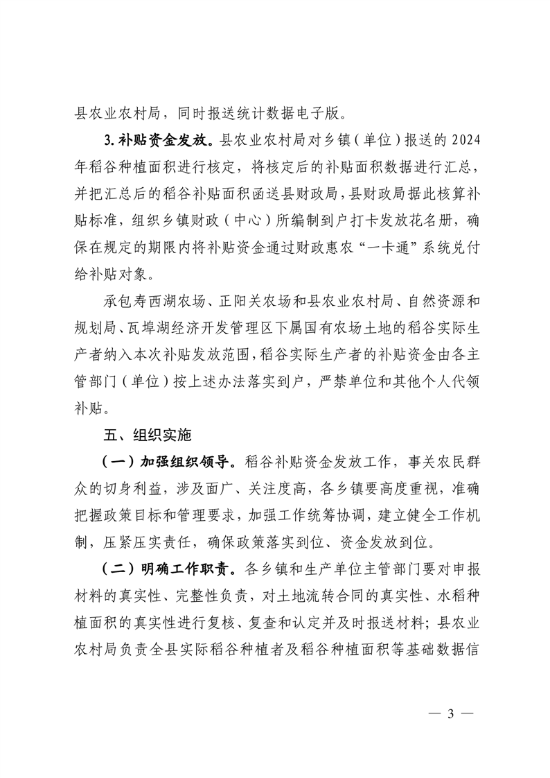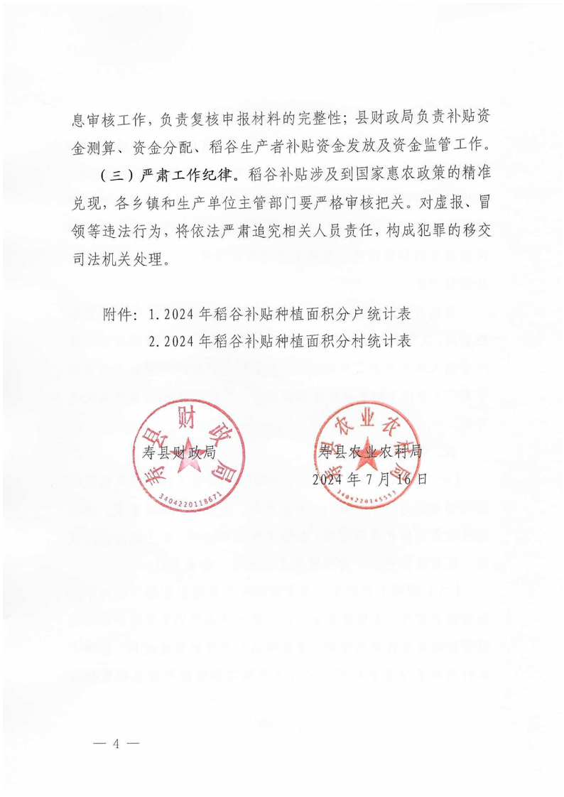 寿县财政局寿县农业农村局关于做好2024年稻谷补贴资金发放工作的通知