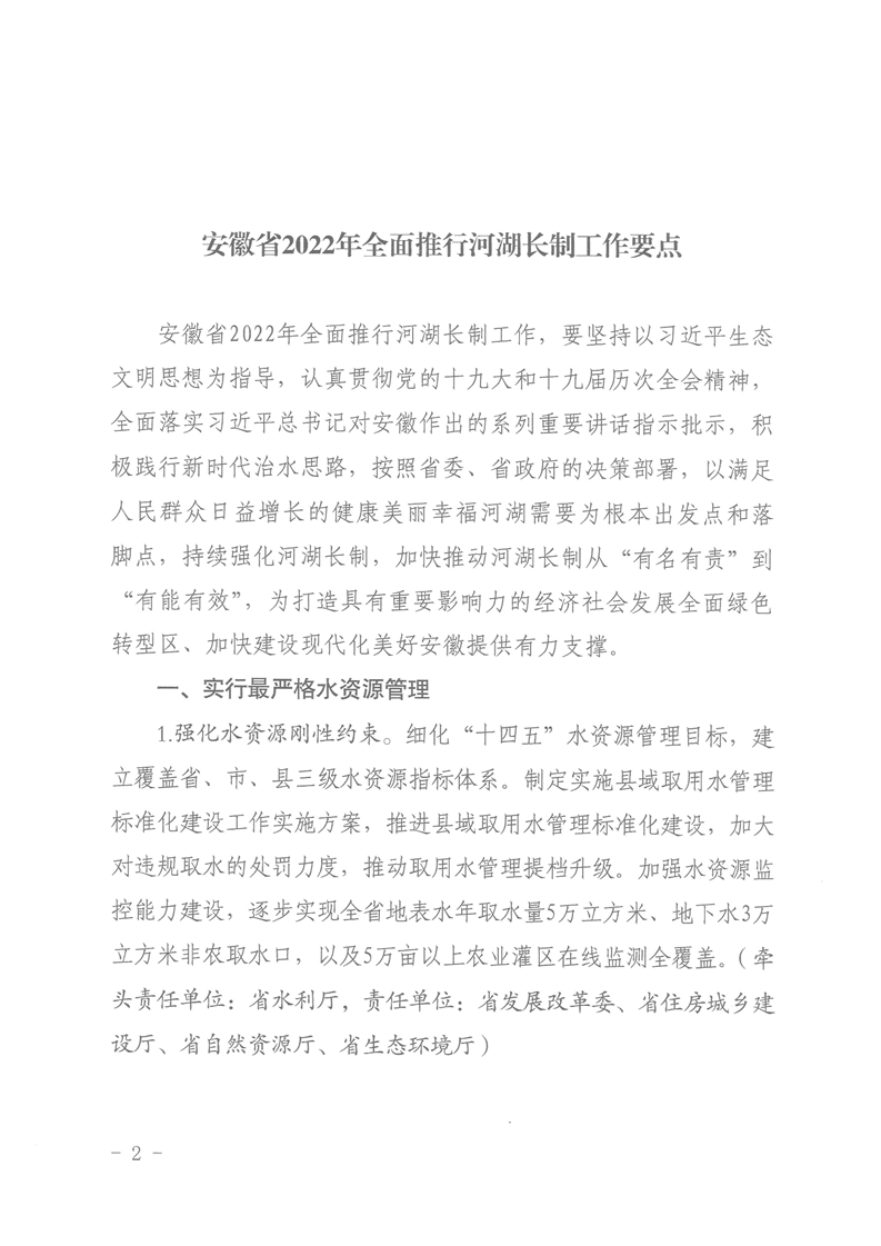 名称: | 关于印发安徽省2022年度全面推行河湖长制工作要点的通知(皖河长办【2022】11号) |