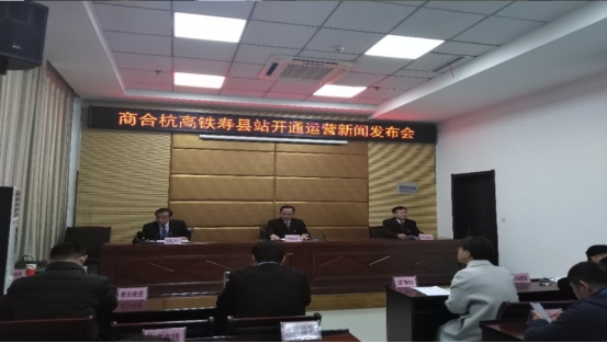 发布会上,寿县发改委赵东升主任发布寿县高铁站建设有关情况。