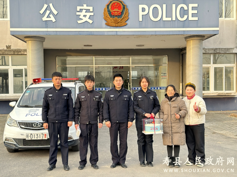 2026年1月10日,是第六个中国人民警察节,寿县堰口派出所与县公安局交通管理大队三中队的值班民警们,收到了一份特别的节日温暖。寿县小红帽爱心志愿者服务队的爱心志愿者将精心准备的蛋糕与诚挚祝福送到值班民警手中。感谢他们长期以来在维护社会稳定、保障人民生命财产安全中的无私奉献。