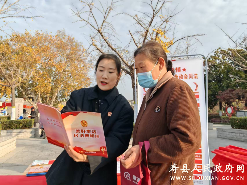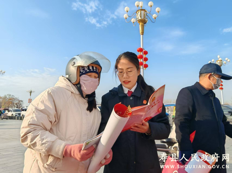 12月4日,淮南寿县春申法治广场冬阳和煦。寿县人民法院的干警们早早来到广场布置展台,一场面向群众的宪法宣传活动,正在有序展开。