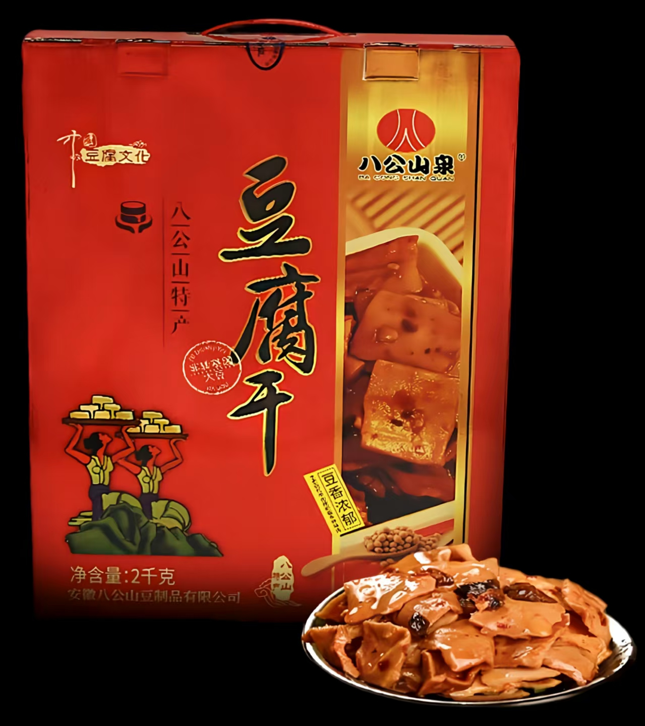 安徽八公山豆制品有限公司成立于2003年,坐落于寿县八公山脚下,是一家高新技术企业。近年来,公司持续深化与高校及科研院所的产学研合作,将传统豆腐制作工艺与现代食品创新技术相融合,成功开发出“八公山泉牌”系列豆制品,其中豆腐干更是其代表性产品之一。