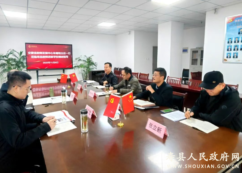11月8日上午,安徽省教师发展中心主任朱曙培一行莅临寿县教师进修学校,就教师培训工作进行深入调研指导。寿县教育体育局高度重视,局长余守全,局党委委员沈国文陪同调研。寿县开放大学(寿县教师进修学校)校长袁理万,分管师训副校长张立新等参加调研座谈。