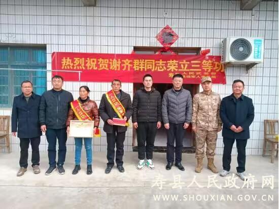 2月21日上午,县人大常委会副主任徐晓军率县人武部、县退役军人事务局负责人到双庙集镇在部队荣立三等功的现役军人谢齐群、李东生家中送喜报,传达党和政府对军人军属的问候与祝福。