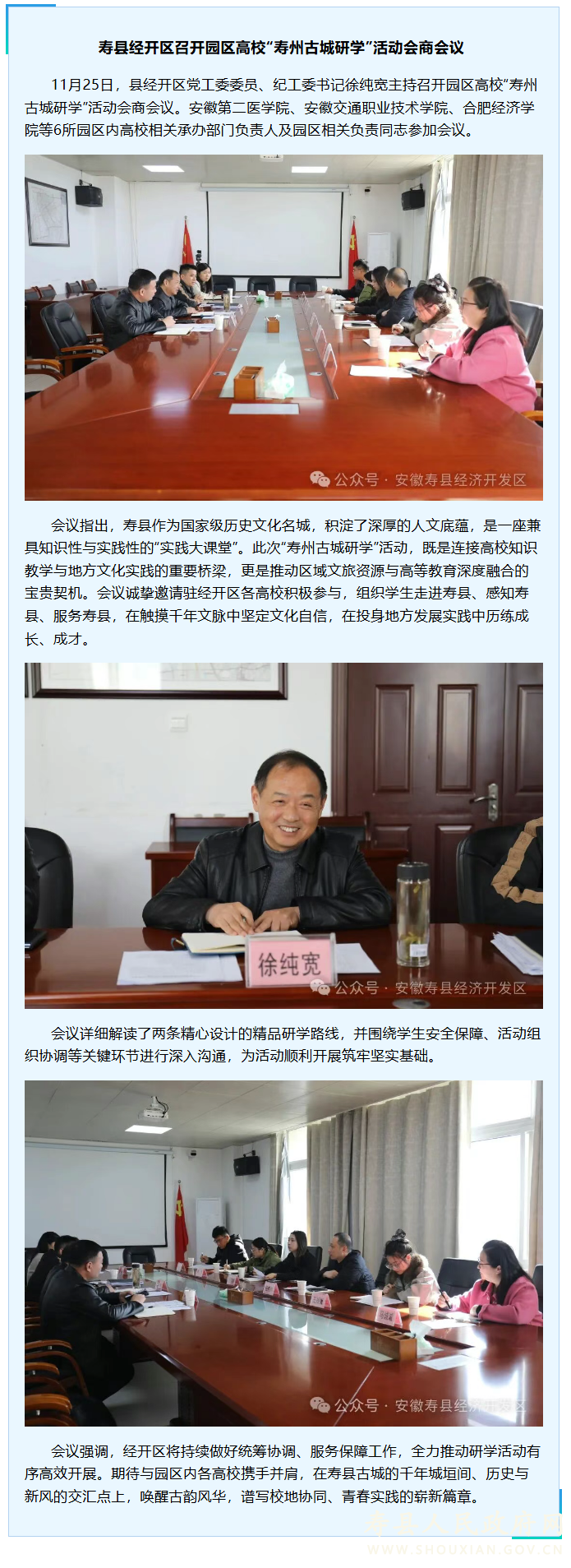 县经开区召开园区高校“寿州古城研学”活动会商会议
