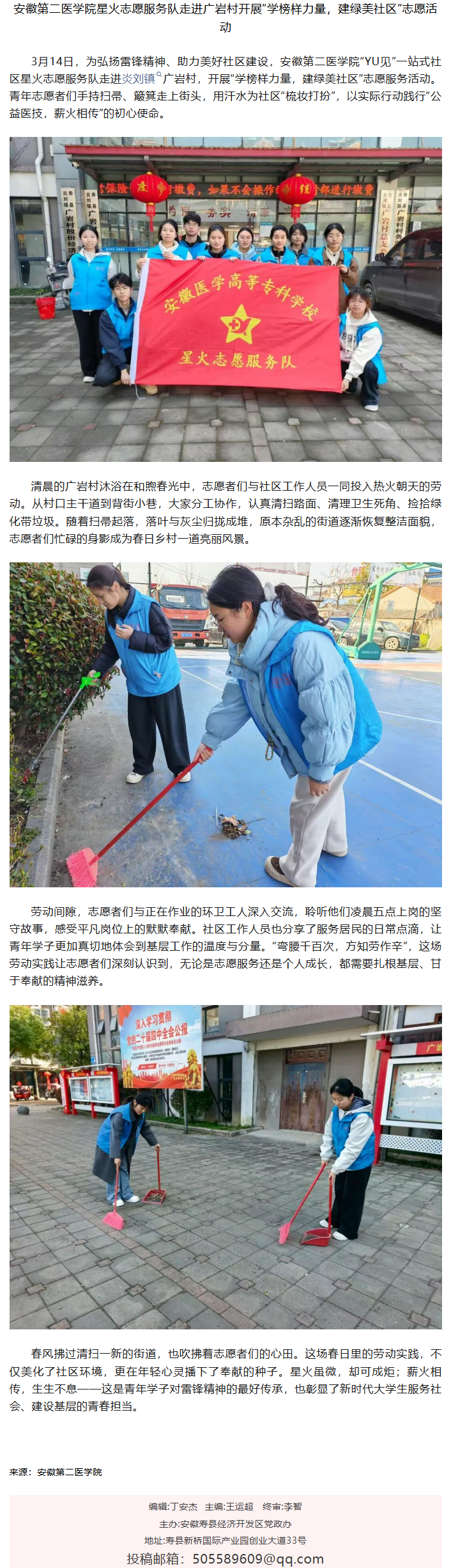 安徽第二医学院星火志愿服务队走进广岩村开展“学榜样力量,建绿美社区”志愿活动