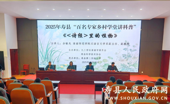 本次活动由九三学社淮南市委员会、寿县科学技术协会共同联合主办,寿县第二实验小学承办,共有 200 余名师生参与。活动不仅让学生深切感受传统文化的魅力,更激发了他们对《诗经》植物世界的探索兴趣。