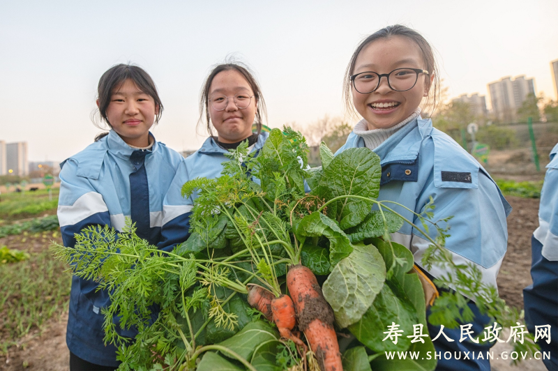 “以前觉得蔬菜就是从菜市场来的。亲手种下种子、看着它发芽结果,才明白‘一粥一饭当思来处不易’。”七年级学生李子涵捧着自己班级种植的蔬菜,语气里满是自豪。自新学期启动劳动教育实践基地建设以来,寿春中学将这片土地打造成融合劳动体验、技能习得与品格锤炼的综合性育人平台,让“双减”背景下的课后时光变得充实而有意义。