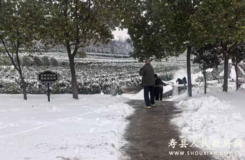 近日,寿县境内突降大雪,寿县八公山林场公墓区域道路积雪深厚,为确保墓园区域内祭祀道路畅通无阻,保障来往群众行走安全,寿县自然资源和规划局积极组织党员干部开展墓园道路扫雪除冰行动。