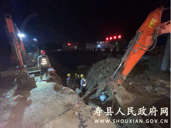 中部片区是寿县城乡供水一体化项目的重要枢纽,覆盖乡镇多、服务人口广,管线铺设里程长,施工任务重。面对春节临近的工期压力,施工团队正争分夺秒,即便在夜间零下的低温环境中,各作业点依然灯火通明。施工人员冒着严寒,坚守在管道铺设现场;冲洗班组在冰冷刺骨的水中,严格按照规程进行管道冲洗与消毒,确保每一段管网都达到通水标准。