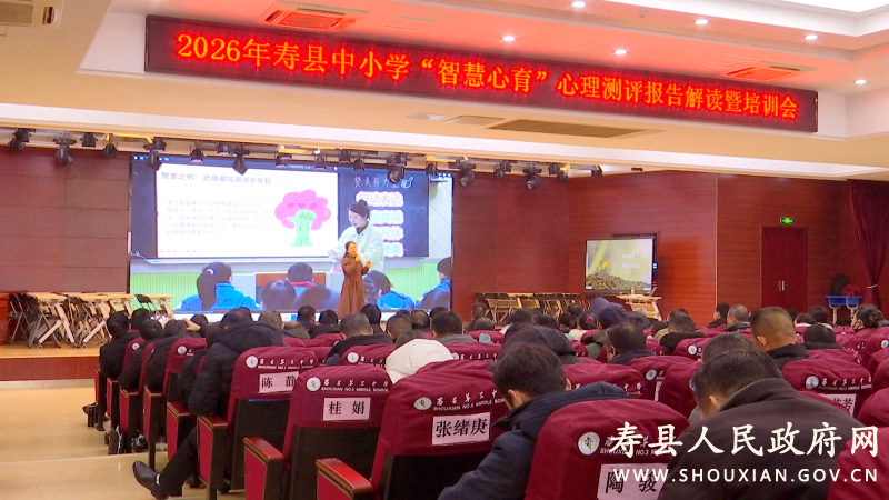 1月23日上午,寿县中小学“智慧心育”测评报告解读暨培训会在寿县三中学术报告厅举行。寿县教育体育局党委委员沈国文,全县各学区、县属中小学负责人及心理健康教师代表参加活动。