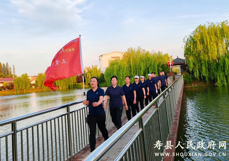 为积极响应全民健身国家战略,5月10日,三觉特跑团在镇丘塘广场,正式拉开第十届“万步有约”健走激励大赛帷幕。