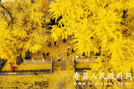 立冬时节的一场小雨,寿县古城内11株“国宝级”银杏树在众多旅客和网红们的期盼中,树叶由绿变黄,叶黄成“瀑”,迎来最佳观赏期。树干挺拔、树冠亭亭如盖,风吹叶落、金翠铺地,四面八方的游客嗅着黄叶香,踏着一地“碎金”前来打卡、拍照,网传至朋友圈,分享赏“金”之悦。