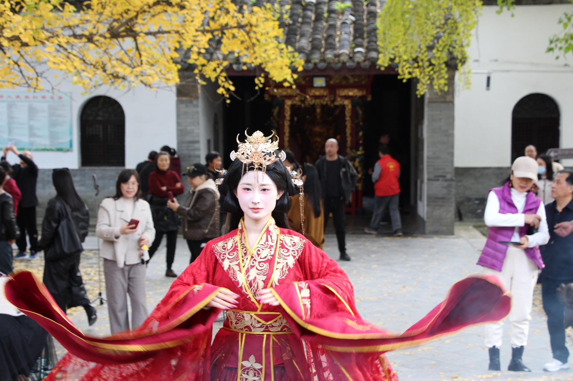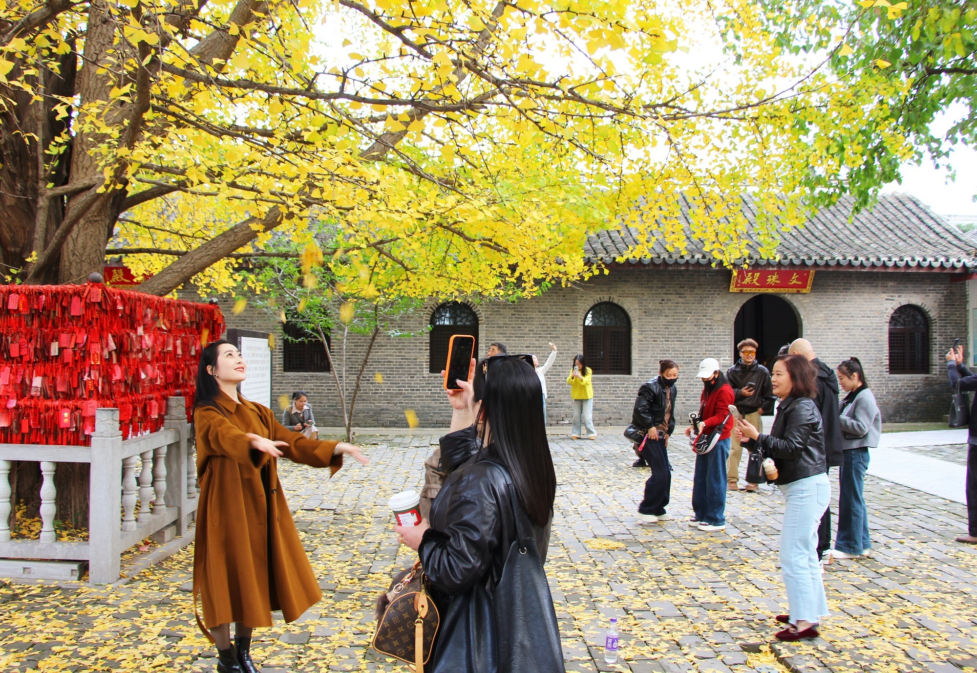 2025年,寿县依托报恩寺的“唐杏”、孔庙的“元杏”和清真寺的“明杏”,推出寿州古城“三生有杏”旅游系列活动,通过“寻唐”“溯元”“访明”,“踏金接福”,让游客沉浸式解锁古银杏打卡,留存古城冬日游记忆。