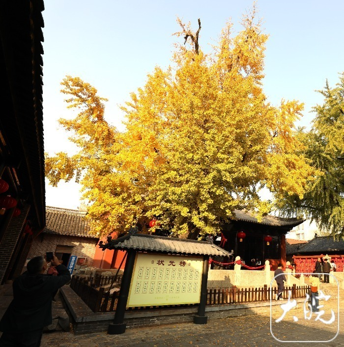 11月17日,游人在寿县古城孔庙内观赏银杏树。时下,寿县古城内11株“国宝级”银杏树的树叶由绿变黄,进入最佳观赏期。