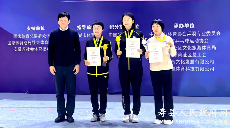近日,在安徽芜湖市落幕的“劳动者杯”2025中国职工乒乓球、羽毛球联赛总决赛中,寿县籍选手王倩勇夺乒乓球项目中年组女子单打冠军。