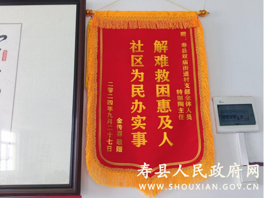 在双庙村为民服务大厅,有一面普通的锦旗静静悬挂,却讲述着一段不普通的温情。锦旗上写着“解难就困惠及人 社区为民办实事”,右侧备注:“特别感谢陶主任”。为什么要特别感谢陶主任呢?