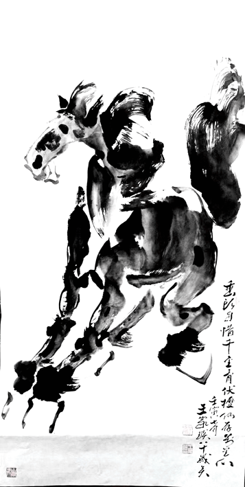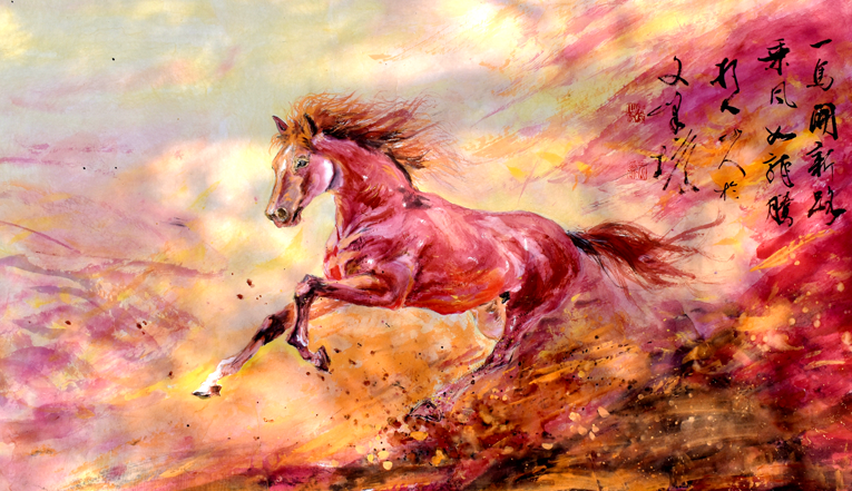 与此同时,以“马”为题材的国画作品亦各呈其美,有的挥毫泼墨、纵横捭阖,写暮年伏枥之心,也有的兼工带写、彩墨交融,畅万里凌云之怀。作者以笔寄情,以墨言志,将对未来美好生活的憧憬、对中华民族奋力崛起的期许,尽付丹青。