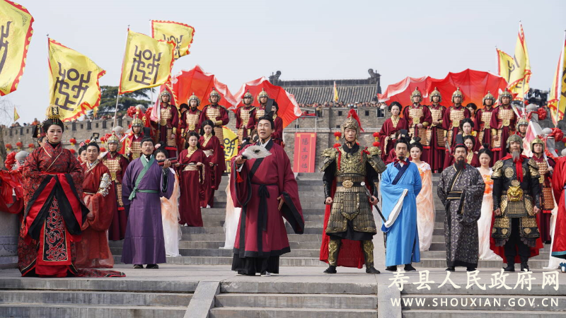宾阳门外更是人头攒动,迎宾礼精彩开演,悠扬楚乐、特色表演让现场民众连连叫好。演员化身芈月、楚考烈王等寿县历史人物,在宾阳桥以古礼迎接宾客,民众与游客争相上前互动打卡,近距离感受楚风古韵,叫好声、欢笑声交织成一片,千年古城在万众欢腾中,绘就出一幅喜庆祥和、热闹非凡的新春民俗画卷。
