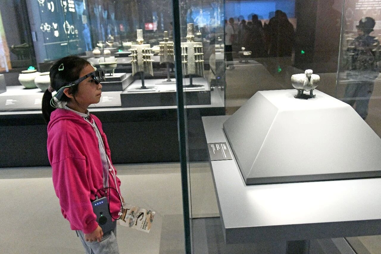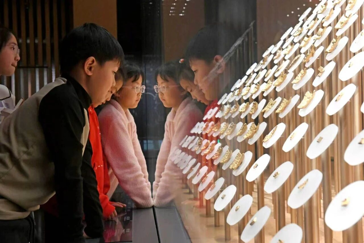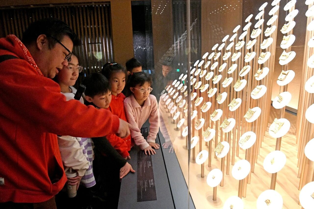 2026年4月1日,在安徽淮南寿县安徽楚文化博物馆,小学生们正在了解楚金币。