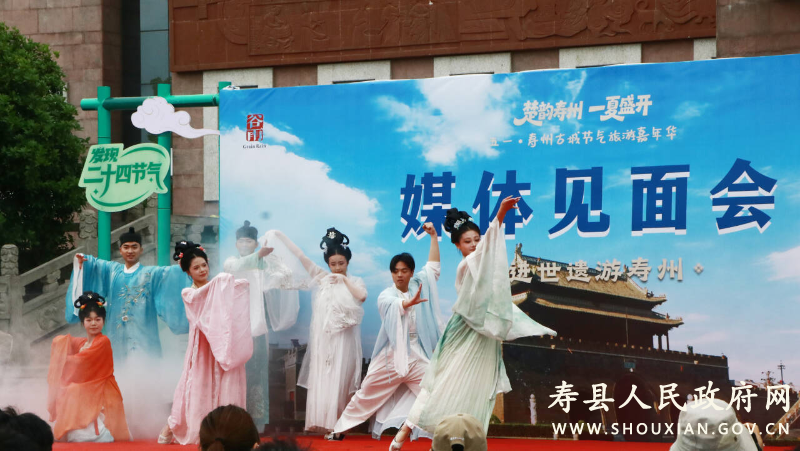 4月20日谷雨时节,“走进世遗游寿州”五一・寿州古城节气旅游嘉年华新闻发布会在寿州古城二十四节气馆广场举行。县委常委、政法委书记李锐,县人大常委会副主任王多好,副县长童丽等出席活动。