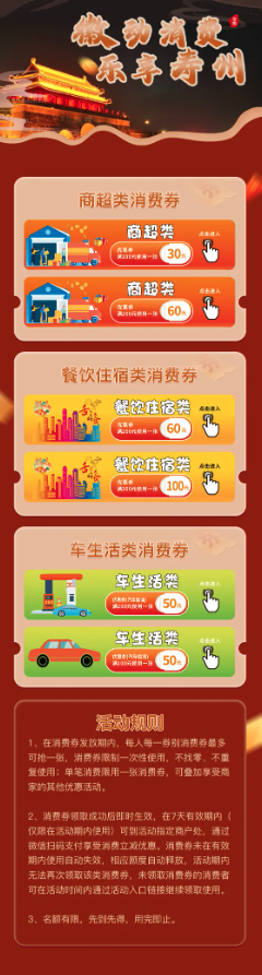 为深入贯彻落实国家和省、市促消费、稳经济系列政策部署,切实提振消费信心,激活消费市场,释放消费潜力,根据县委县政府工作安排,现组织开展2025年“徽动消费 乐享寿州”惠民消费券发放活动。具体事项公告如下: