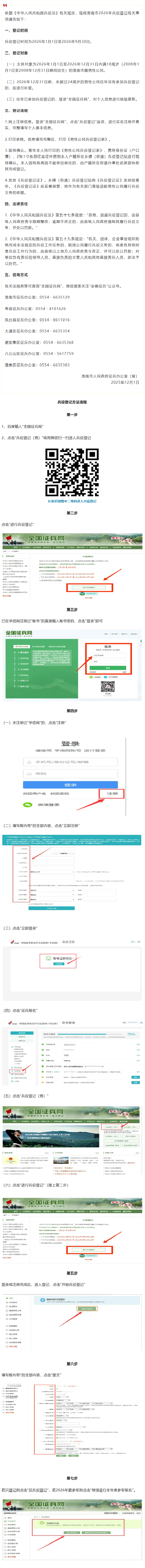 淮南市2026年兵役登记公告