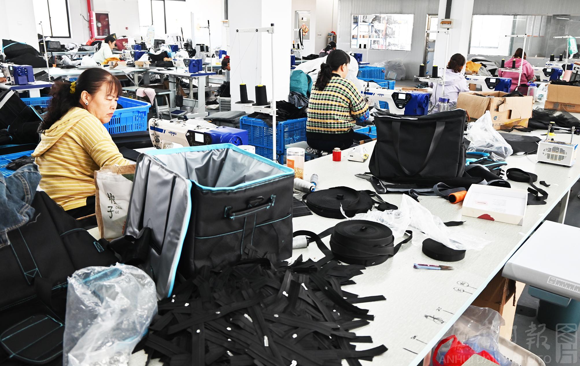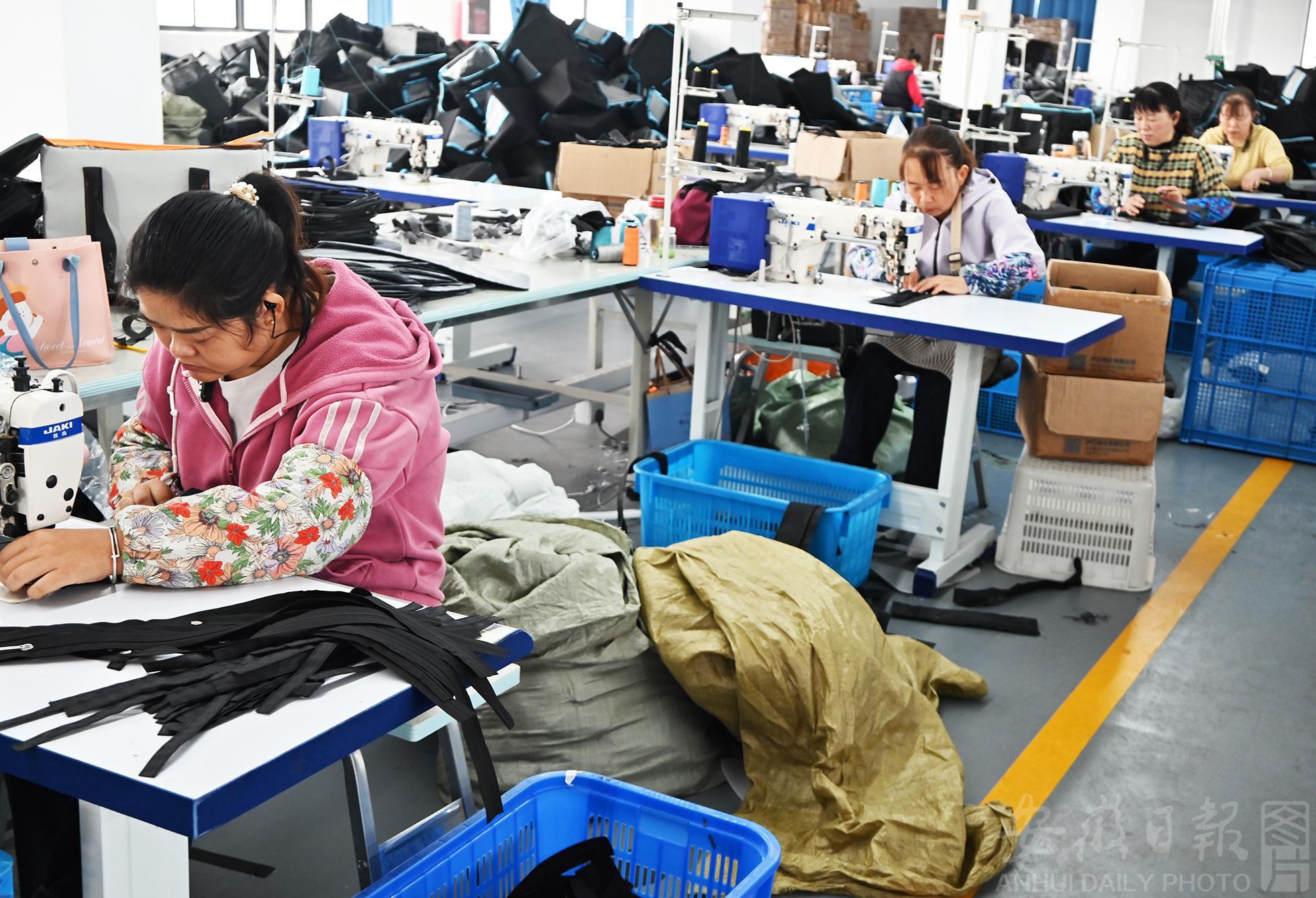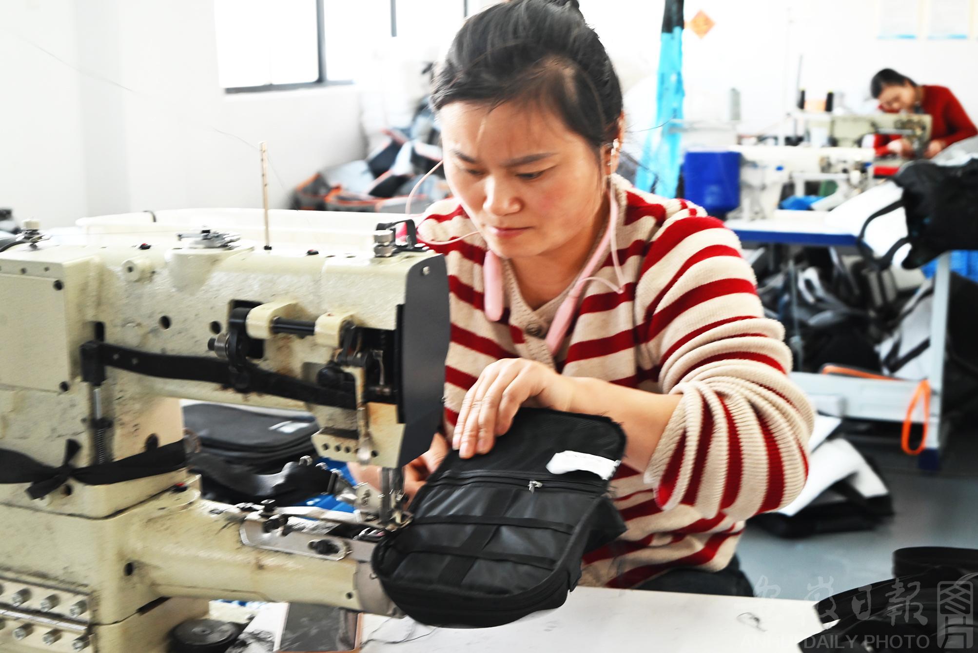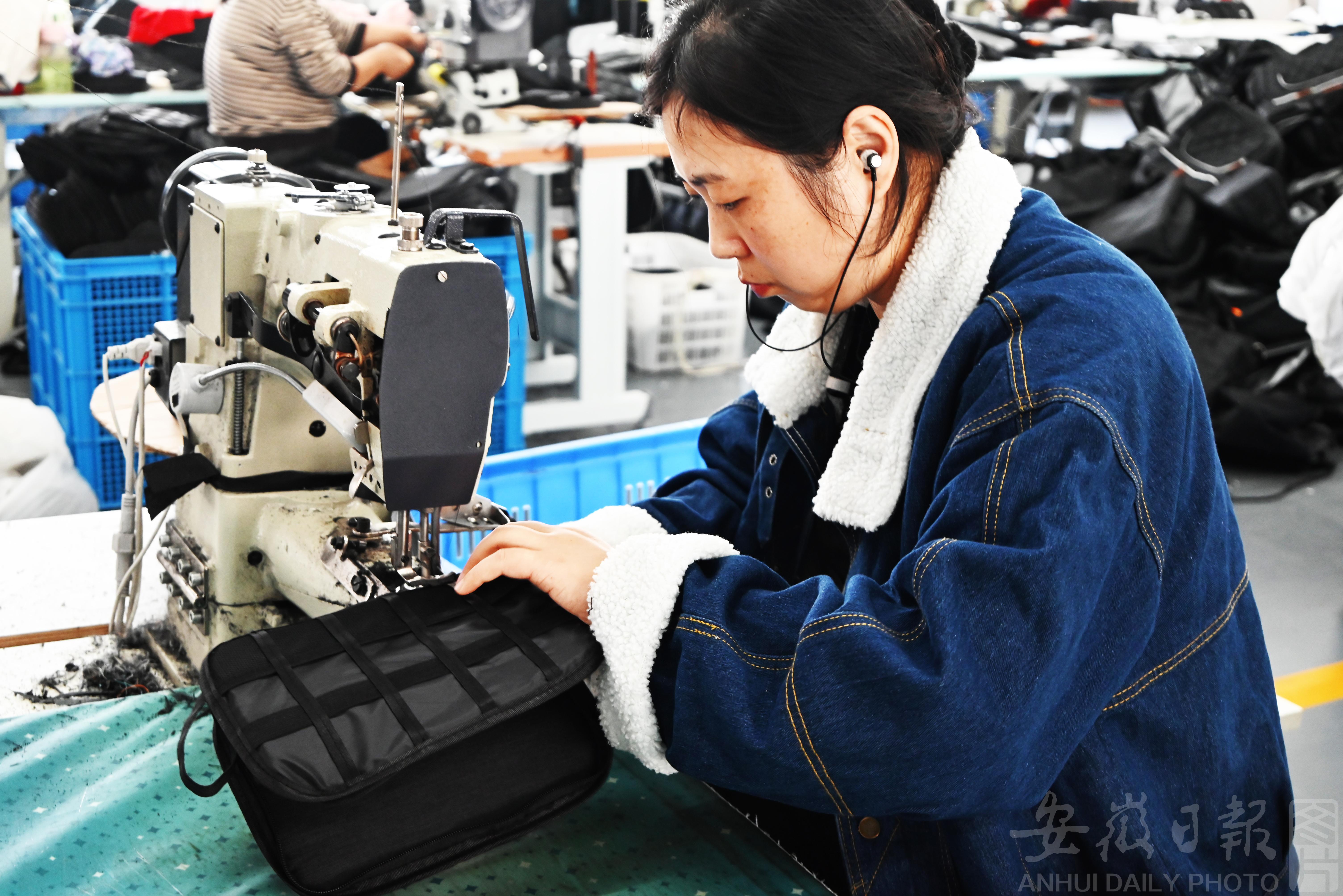10月30日,寿县大顺镇帝卡龙箱包厂车间里,工人熟练地操作缝纫机,进行外贸皮包的裁剪、缝纫、检验、包装等作业,一派忙碌的生产景象。近年来,寿县大顺镇通过打通就业“最后一公里”,引导企业将适合的岗位送到农村,有效吸纳农村剩余劳力,助力低收入农户实现在“家门口”就业,努力探索“产业强、企业兴、共同富”目标的“新密码”。