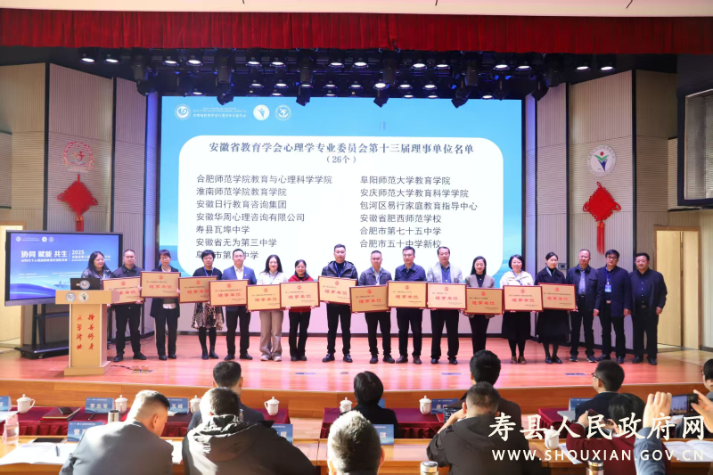 11月14日—16日,安徽省第七届教育心理学大会暨安徽省教育学会心理学专业委员会第十三次会员大会在合肥召开,寿县瓦埠中学凭借在心理健康教育领域的扎实实践与显著成效,成功获评安徽省教育学会心理学专业委员会理事单位。