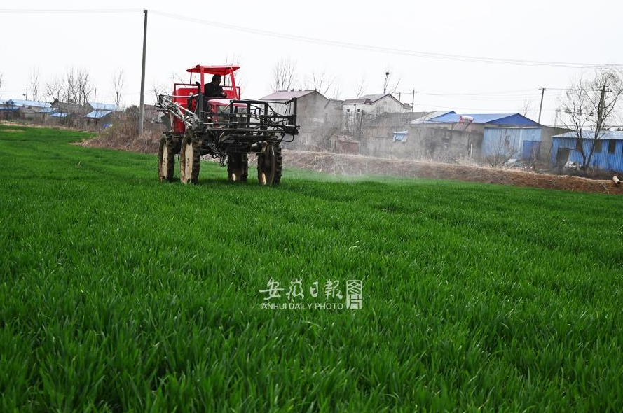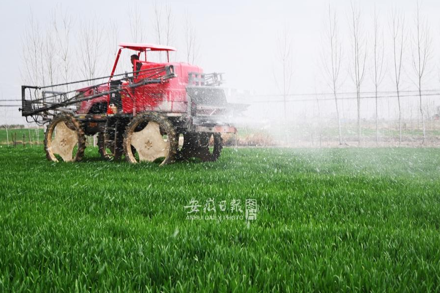 2月23日,安徽省淮南市寿县双庙集镇一家粮食生产企业,在小麦和油菜种植基地里,进行自走式植保机喷洒尿素壮苗肥劳动作业。据了解,双庙集镇科技特派员和粮食生产企业与农户,抓住近日降水契机,为全镇小麦和油菜进行追撒越冬后壮苗肥劳动工作,为丰收牢固根基。