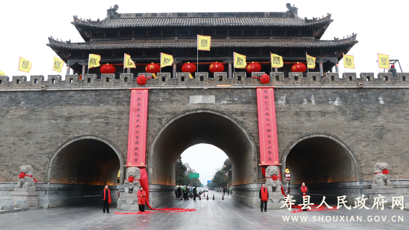 2月10日,农历小年,由寿县人民政府、国际古城墙(堡)联盟共同主办的第八届寿州古城“城门挂春联”活动在寿县古城通淝门举行。县委书记孙奇志,县人大常委会主任朱勇,县政协主席李琼,县委常委、副县长房鲲鹏出席仪式并为古城通淝门(南门)揭联。县领导王亚晖、饶洁、毛远义、李锐、张强、刘猛、李家明、王多好、张亮、陆中洋、王素苗、童丽、余澄清、吴标、肖红霞等出席活动。