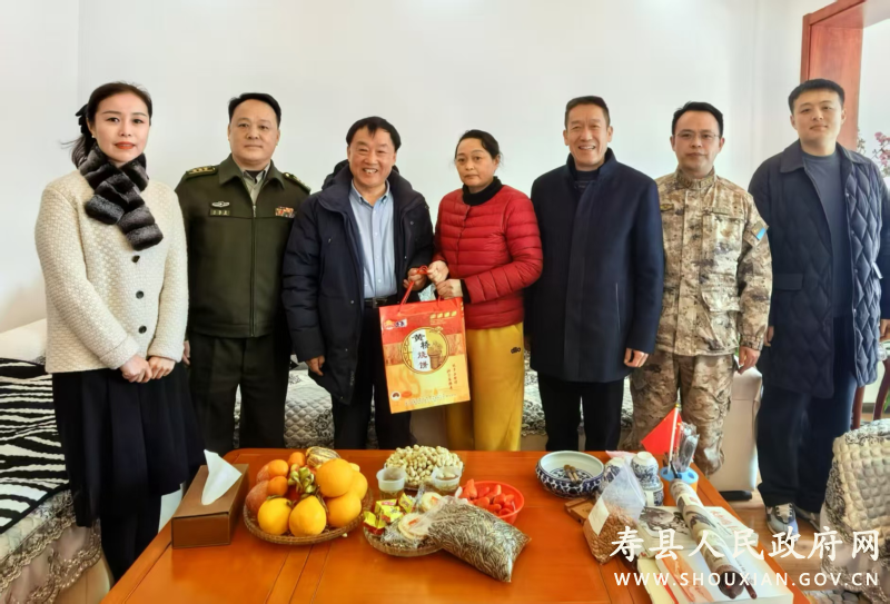 2月20日,大年初四,清华大学机械工程系教授、博士生导师叶佩青带领清华大学机械工程系创新领军工程博士生张永红,在寿县县委常委、人武部部长付德勇,人武部政委张海深陪同下,看望慰问烈士亲属金国芹,向她送上新春的祝福与关怀。